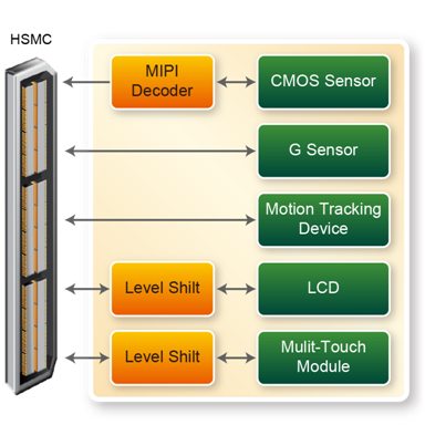 VEEK-MT2-C5SoCアップグレードキットは、HSMCインターフェースを介してC5SoCボードと接続されます。